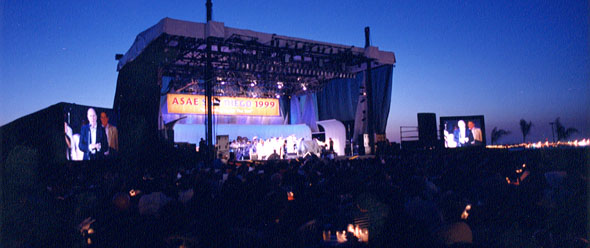 When the American Society of Association Executives came to San Diego, they celebrated their final night with Kenny Loggins and the San Diego Symphony. Meeting Services supplied the lights and video. Technical highlights of the show included: