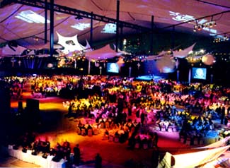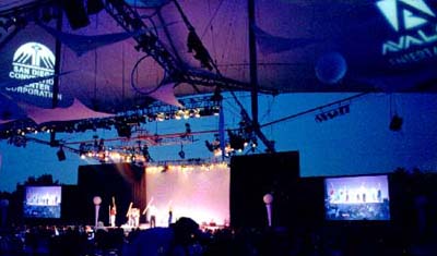 ![]() Power 5gv’s Shine Brightly at Meeting Professionals International GalaMSI’s new video stars, the Power 5gv DLP projectors, made their debut “Under the Sail” at the San Diego Convention Center. The scene was the Gala Finale for Meeting Planners International. Three-thousand attendees had their evening of entertainment enhanced by watching big, bright (5000 ANSI Lumens), beautiful images on the screens. The event featured multiple live performances on two stages. Image Magnification was fed by three of our new Sony D-30 cameras, part of our component triax system. ![]() Lighting and sound also played a major part, for both the performances and for the ambiance. Here’s a list of what it took to put on this extravaganza:
