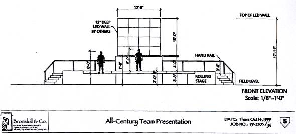 When Major League Baseball decided to honor the thirty greatest players of the twentieth century just before the first pitch of the second game of the 1999 World Series they called MSI first. Executive Producers Brian O'Gara and Reg Bronskill wanted to use large screen projection, a multi-level set and extensive use of follow spots to enhance the presentation and called Tom Bollard to head up the project.